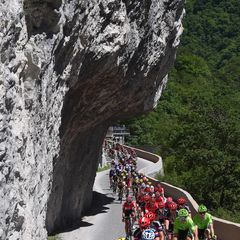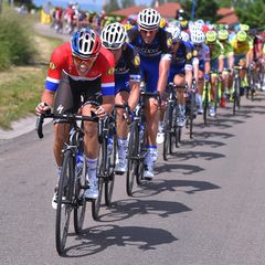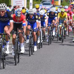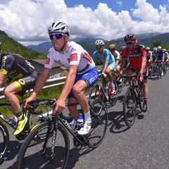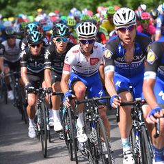 A tough mountain test, stage 7 set off from Le Pont-de-Claix and went over five categorized climbs before the final obstacle of the day, the third-category Superdévoluy (3.8 kilometers, 5.9%), which was returning to the race after a three-year hiatus. Long before that, Tony Martin moved to the front of the reduced peloton and his mammoth effort trimmed the bunch, while reeling in all bar one of the day's 20 escapees, Stephen Cummings (Dimension Data), who was more than four minutes up the road with around 30 kilometers remaining.