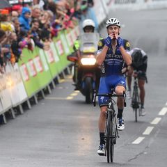 As expected, on the last climbs the bunch got fragmented and a chase group was formed, Dan Martin being among those who got infiltrated there, before eventually joining the break inside the final 20 kilometers. Several attacks soon followed, but the group sticked together until a strong acceleration of Cummings split it. Vermote was the only one to react and the duo soon built a 40-second gap which allowed them to fight for victory in Kendal. The uphill drag to the finish didn't pose any problem to Julien, who powered away and won with a two-second margin, thus bagging his first victory of the season.