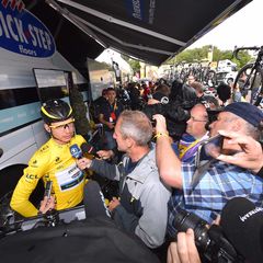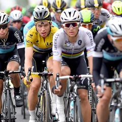 "I couldn't sleep so well last night," Martin said. "I fell asleep maybe at 2 o'clock in the morning and woke up early again, But it was OK for me. I woke up feeling well, thinking directly about the yellow jersey. It gave me a lot of power and morale today in the race. I hope I can find more sleep in the next nights, or else I won't see Paris (laughs). As for the race, I tried to do my job for Cav in the finale. I wanted to lead him until the last kilometer and a half, and stay safe for yellow. I don't know what happened with the sprint after that. I did my job for Cav as well as I could and didn't take any risks. I think the team did well today going into the sprint. We avoided crashes and were always in good position. The race was super stressful. A lot of nervousness, crashing, and fighting for position. I couldn't really enjoy the day as I didn't have time to think about being in yellow. In the end of this kind of stage we were lucky to stay upright. It wasn't really a day for celebration. We will see about the next days. We have some very good riders that can be active in different kinds of stages. With our team you never know what we can do in the next days and weeks. I just want to keep yellow as long as possible, but I am also realistic that when the big mountains come I probably cannot stay with the best riders. Especially since I didn't train for those kinds of stages.. My goal is to stay in yellow until the TTT, not the big mountains."
