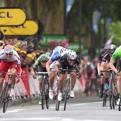 "It was a bit chaotic," Cavendish said. "I went around Sagan and I kicked, and I saw Demare kick, and on his right Kristoff. So if I pass I could drag strip Kristoff into the finish. Greipel and Sagan just came around past me at the end. I didn't feel great in the sprint, but no one felt great after a stage like today. I was going OK, but they just were going faster. Nothing went wrong. We were a man short in the end as Matteo was not 100 percent after his crash today. But really I was just beaten by two very strong guys. One of them already won a stage, this is his second, and he's in the green jersey. So congratulations to Greipel as he deserves this victory. My teammates efforts today in setting me up for the sprint, and protecting Tony in yellow, absolutely complemented each other. I have to give them a lot of credit for how well they were going. We stayed in front the whole day and both objectives required that. Now we look forward to tomorrow. It's a bit difficult for the pure sprinters, that finish. But there are 21 stages at the Tour de France. There are still a few more opportunities. My confidence is good. I think everyone still has high morale after Tony's win yesterday, and I think for sure we'll keep going to try to get more wins at this Tour."