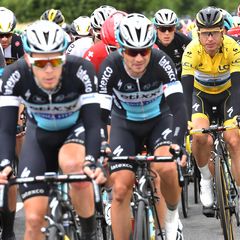 Etixx - Quick-Step successfully kept Martin protected, with UCI World Road Champion Michal Kwiatkowski constantly guiding the German rider in the peloton. Cavendish was also supported well, including being paced back by three teammates to the peloton with 63.3km to go after a mechanical.