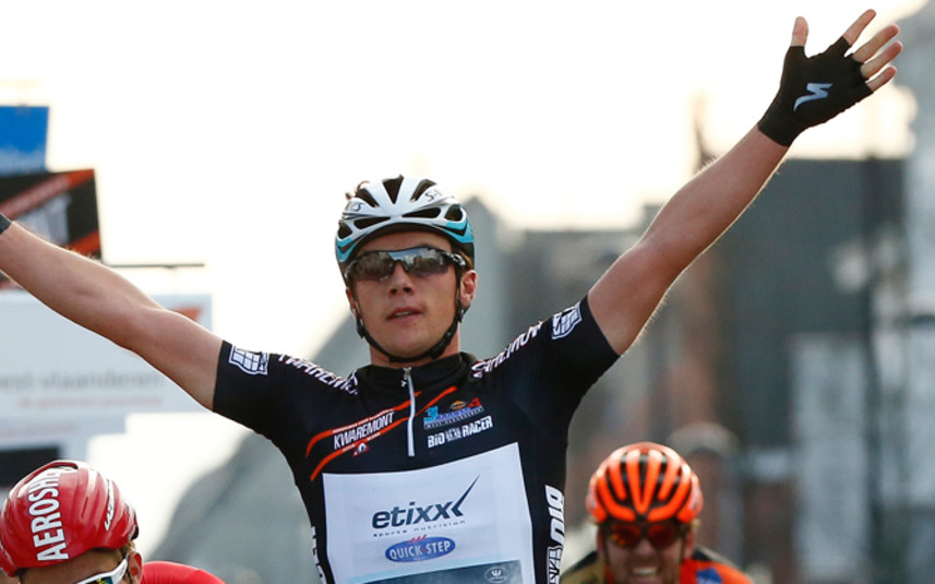 "I'm very happy I won in Harelbeke," Lampaert said. "It's 5 kilometers from where I live, so it's a really big moment for me. It was a tough race. When we passed on the Oude Kwaremont we were on the front pushing the pace and we entered a breakaway with 14 or 15 riders. I was there with Wisniowski and Velits. We tried to stay in front but the peloton caught us just before the final circuit started. But on the first lap I went for the bonification and as a consequence of this acceleration we were in front with five riders. So at that point we started pulling. I thought it would be hard to pull off, but we made it to the end. In the last kilometer Cordeel attacked. Van der Sande then started his sprint really early to close the gap, and I was on his wheel. I started my sprint at 200 meters to go and was able to pass him. This is also a special day because I want to dedicate this victory to Philippe Van Dorpe, who died not long ago. He was the race organizer but also one of my sponsors as an Under-23 rider. He was even a good friend of the team. So this win is for him. Concerning tomorrow, we will try to do everything to keep the leader's jersey. It won't be easy with an unpredictable race on a parcours that includes climbs like the Kemmelberg, but the goal is to defend me as the overall leader."