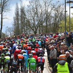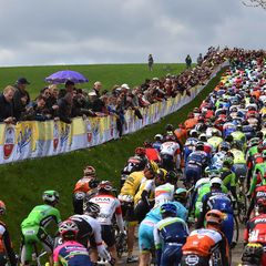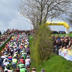 On the penultimate ascent of Cauberg (800 meters, 6.5%), Luxembourg champion Bob Jungels – in his first race after an altitude camp – made his way to the front of the pack and attacked in order to stir things up, only Enrico Battaglin (LottoNL-Jumbo) being able of following him. On the final passage of the finish line, the two had just a handful of seconds and were soon caught. On the flat run-in to the last climb of the race, the same Cauberg, Tim Wellens (Lotto-Soudal) attacked and got 17 seconds in an instant, which prompted the fast reaction of Pieter Serry. The Belgian came to the front and began to chew into Wellens' advantage, which dropped until the foot of the hill.
