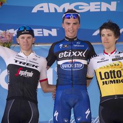 The pack, led by Julian Alaphilippe, came to the line 43 seconds later, the 23-year-old Frenchman finishing seventh and holding onto the yellow jersey with just three days left to go at the 11th edition of the Tour of California. On the eve of the 20-km long individual time trial in Folsom, Julian – who claimed the victory on the queen-stage of the race – is 22 seconds clear of Peter Stetina (Trek-Segafredo), with George Bennett (LottoNL-Jumbo) rounding out the podium, a further 15 seconds behind.