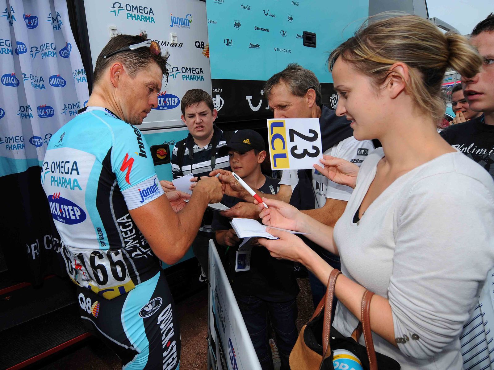 Omega Pharma - Quick-Step Cycling Team moved to the front with 7km to go, bringing the entire team to the front to assist Ciolek. One by one, riders pulled off. However, Philippe Gilbert (BMC Racing Team) decided to surprise the peloton by attacking with 1.5km to go. The peloton scrambled to make the catch, and with just a few hundred meters to go, Gilbert was caught and the hectic sprint to the finish line began.