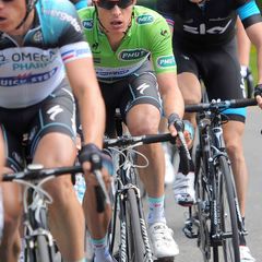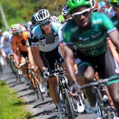 Omega Pharma - Quick-Step Cycling Team rider Gianni Meersman was guided into sprint position by his OPQS teammates, after a long day of chasing down breaks on a stage with six climbs, but a descent into a flat finish. The stage favored a bunch sprint finish, but that didn't stop several riders from trying to steal the stage in a breakaway.