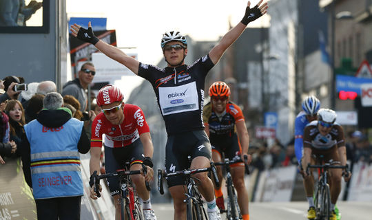 "I'm very happy I won in Harelbeke," Lampaert said. "It's 5 kilometers from where I live, so it's a really big moment for me. It was a tough race. When we passed on the Oude Kwaremont we were on the front pushing the pace and we entered a breakaway with 14 or 15 riders. I was there with Wisniowski and Velits. We tried to stay in front but the peloton caught us just before the final circuit started. But on the first lap I went for the bonification and as a consequence of this acceleration we were in front with five riders. So at that point we started pulling. I thought it would be hard to pull off, but we made it to the end. In the last kilometer Cordeel attacked. Van der Sande then started his sprint really early to close the gap, and I was on his wheel. I started my sprint at 200 meters to go and was able to pass him. This is also a special day because I want to dedicate this victory to Philippe Van Dorpe, who died not long ago. He was the race organizer but also one of my sponsors as an Under-23 rider. He was even a good friend of the team. So this win is for him. Concerning tomorrow, we will try to do everything to keep the leader's jersey. It won't be easy with an unpredictable race on a parcours that includes climbs like the Kemmelberg, but the goal is to defend me as the overall leader."