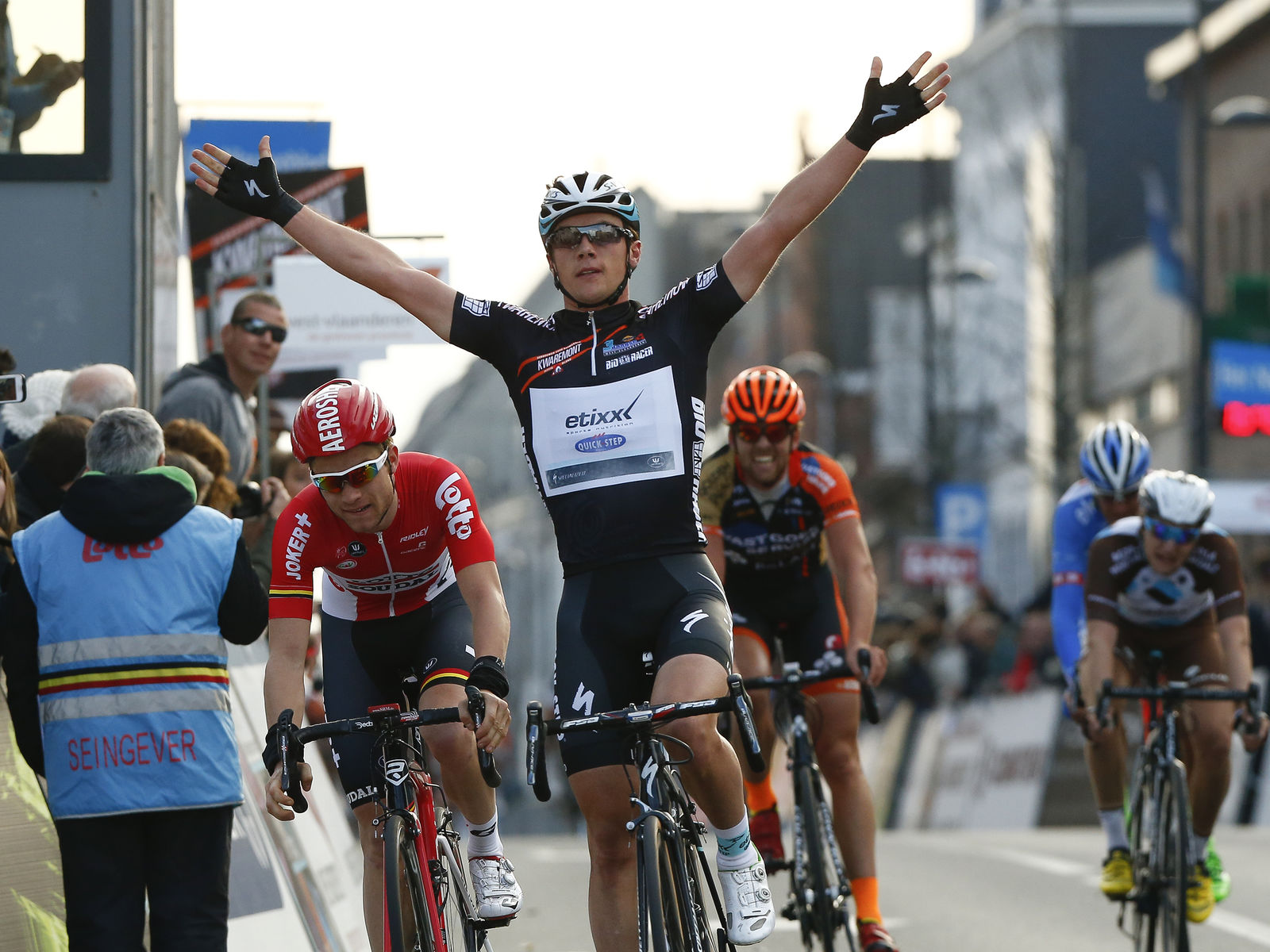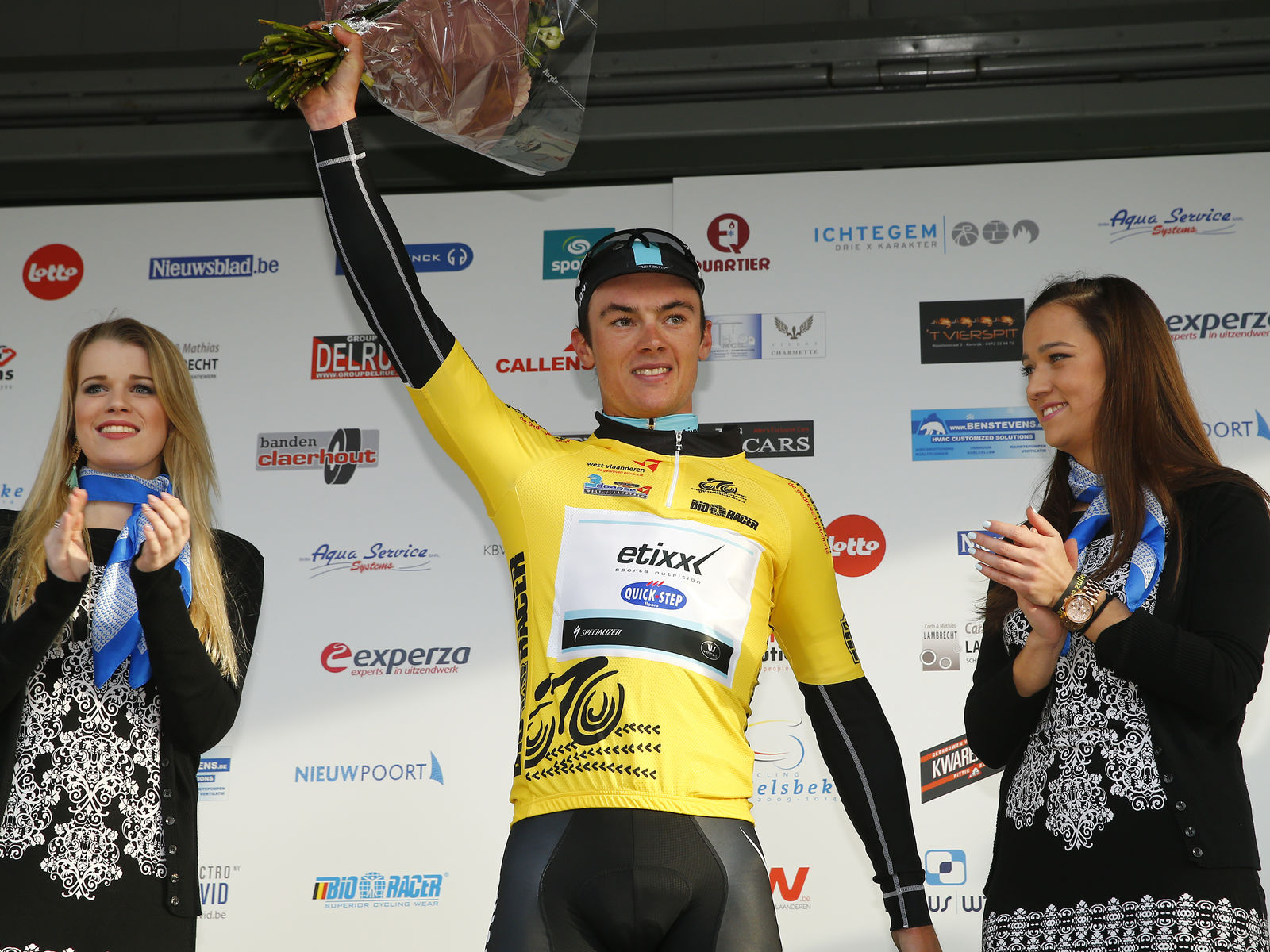 "I'm very happy I won in Harelbeke," Lampaert said. "It's 5 kilometers from where I live, so it's a really big moment for me. It was a tough race. When we passed on the Oude Kwaremont we were on the front pushing the pace and we entered a breakaway with 14 or 15 riders. I was there with Wisniowski and Velits. We tried to stay in front but the peloton caught us just before the final circuit started. But on the first lap I went for the bonification and as a consequence of this acceleration we were in front with five riders. So at that point we started pulling. I thought it would be hard to pull off, but we made it to the end. In the last kilometer Cordeel attacked. Van der Sande then started his sprint really early to close the gap, and I was on his wheel. I started my sprint at 200 meters to go and was able to pass him. This is also a special day because I want to dedicate this victory to Philippe Van Dorpe, who died not long ago. He was the race organizer but also one of my sponsors as an Under-23 rider. He was even a good friend of the team. So this win is for him. Concerning tomorrow, we will try to do everything to keep the leader's jersey. It won't be easy with an unpredictable race on a parcours that includes climbs like the Kemmelberg, but the goal is to defend me as the overall leader."