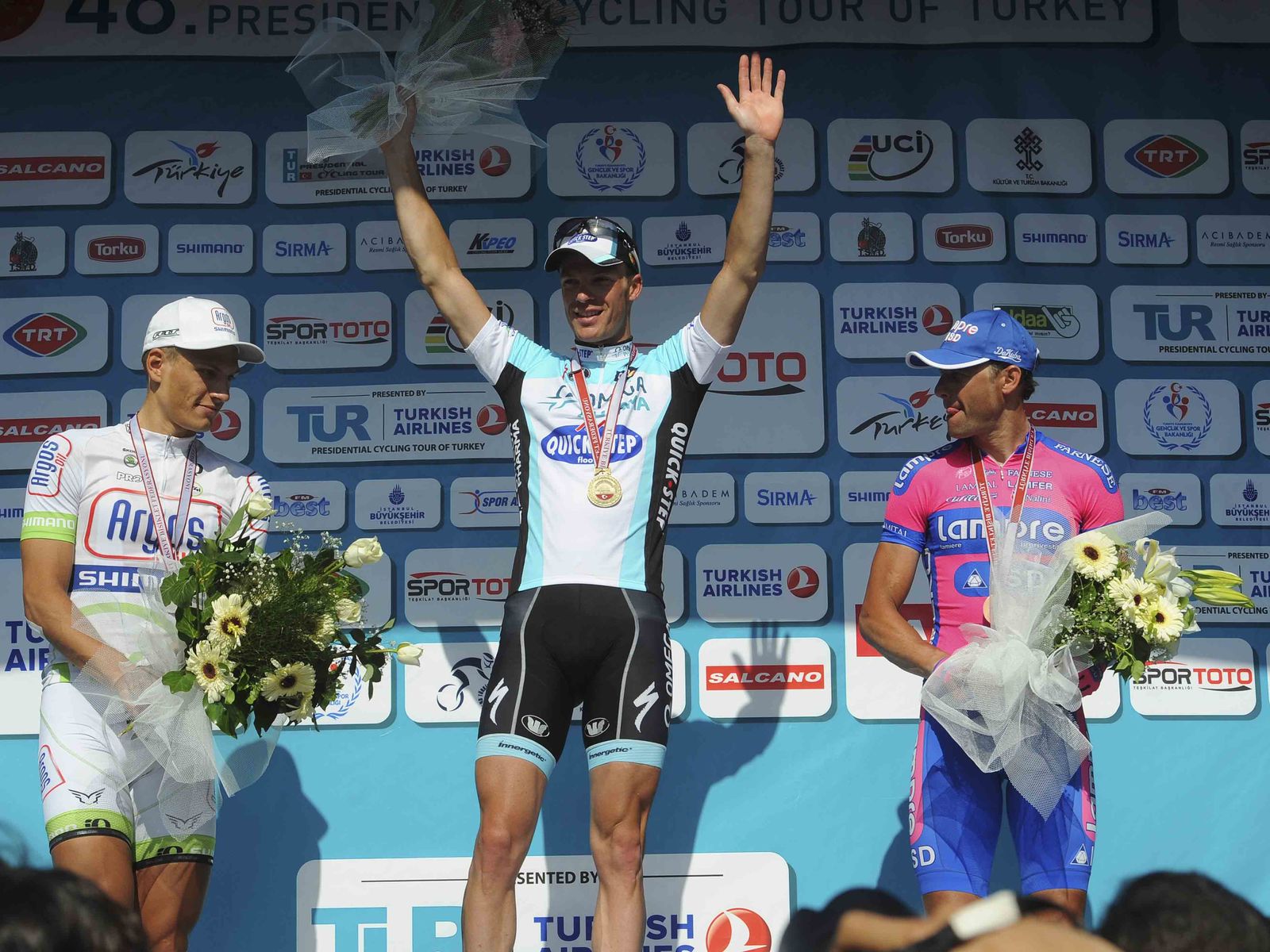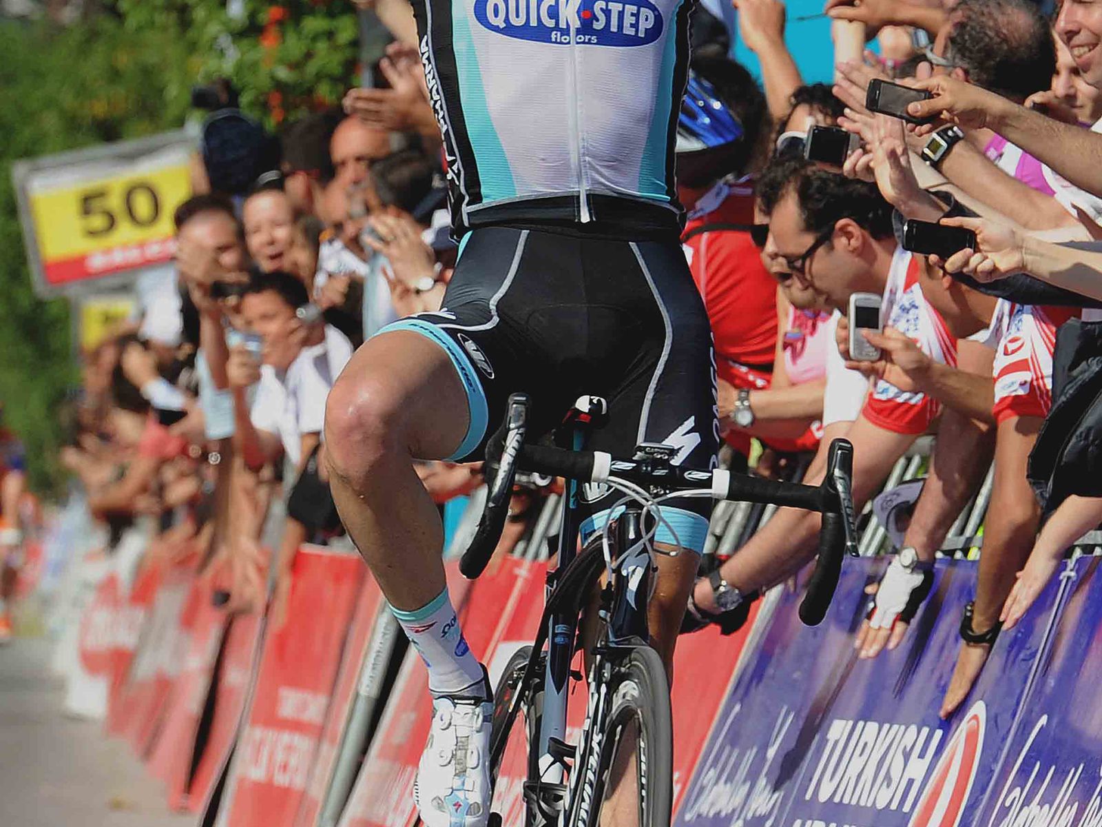 Iljo Keisse pulled off an incredible solo victory at the 118km Presidential Cycling Tour of Turkey Stage 7 on Saturday, attacking a seven rider break with 5km to go, getting a 14" gap on his former break mates, crashing within the final kilometer, fixing a dropped chain, and holding off a surging peloton in the final 50 meters.
