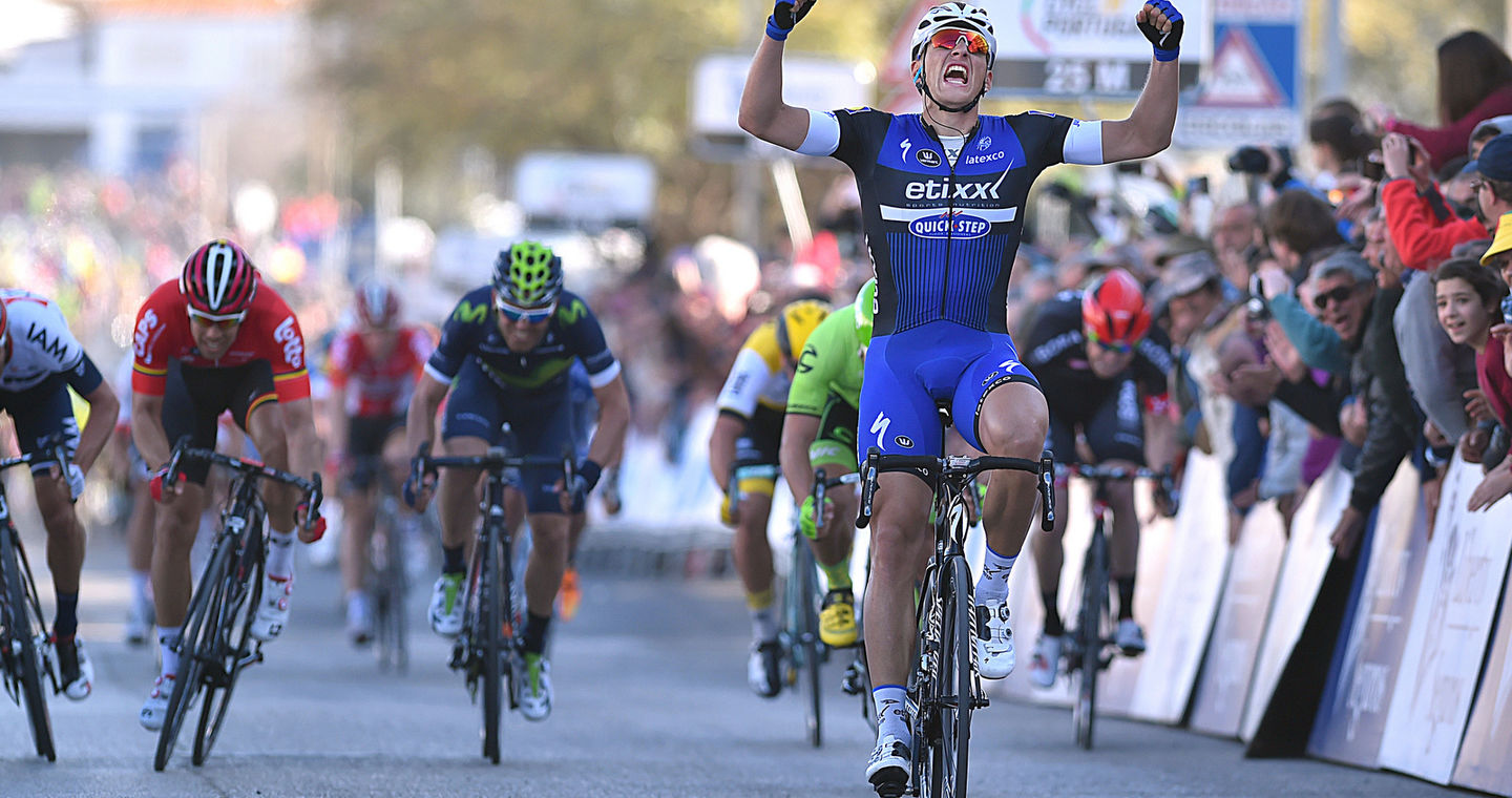 After being protected by his Etixx – Quick-Step teammates throughout the day, Marcel Kittel put on another big sprint and roared across the finish line with his arms up in celebration of his 5th victory of the season, following the three he scored in Dubai and the one he got at the start of the week in Portugal. The dominant win he landed ahead of Wouter Wippert (Cannondale) and Jens Debusschere (Lotto-Soudal) in Tavira – same town which witnessed a Tony Martin success three years ago – helped Marcel open a bigger gap in the points standings, which he leads, with just one stage left to go.