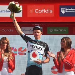Etixx - Quick-Step rider Maxime Bouet earned the Most Combative/Most Aggressive Rider Award, after being meters away from going for a stage victory out of the 173km 12th Stage of La Vuelta a España, on Thursday. Bouet, the third Etixx - Quick-Step rider to be honored as "Most Combative," will wear the red bib numbers that represent the award for the following stage.