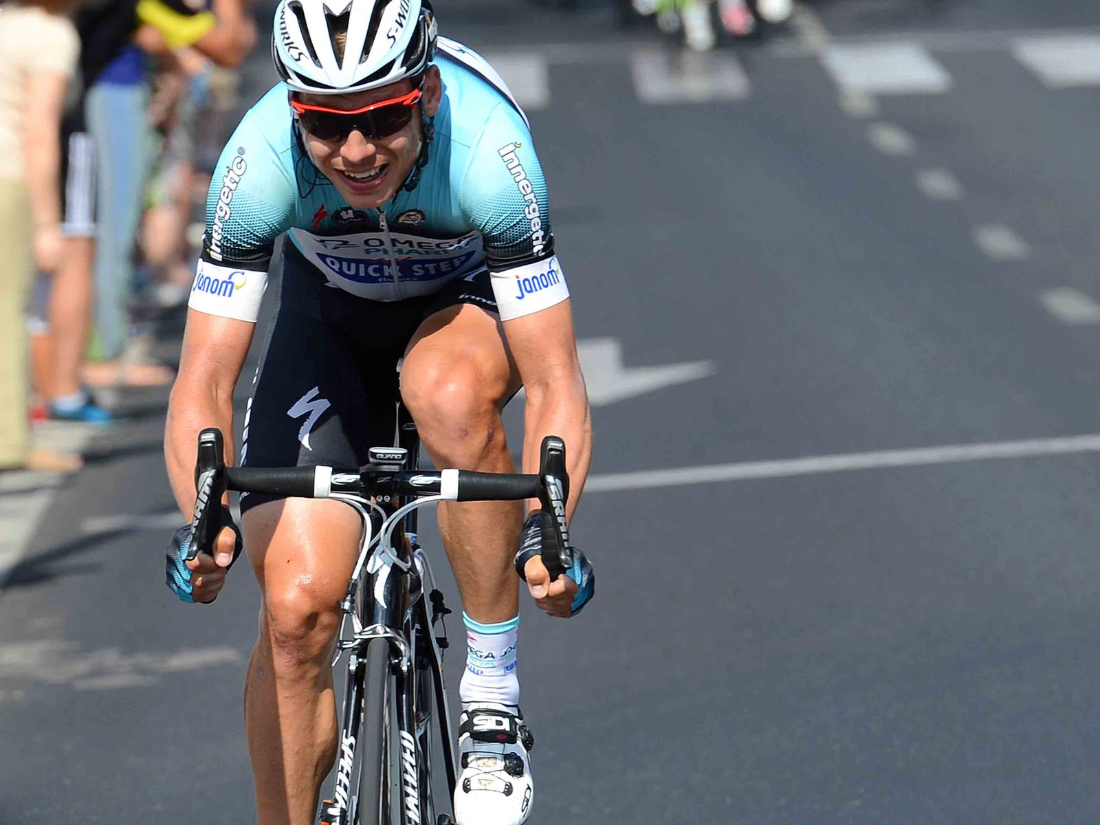 "It was an unusual time trial of almost four hours," Martin said. "I decided to enter the breakaway to try and protect the team. Because even if I was caught, in the final we will also have Gianni Meersman and Andrew Fenn able to do something good in the sprint. So, I decided to go and suddenly I was alone but I took immediately a few minutes. At that point I said, why not? Actually I think it was a good move. I always went pretty good. I have to say the tailwind helped me. Without it, there was no chance to go until the end. In the final the gap was really small. At 10km to go they were really close, and I thought about giving up. But no, I decided to relaunch the action and then I started thinking when they couldnt close the gap that maybe I can do it after all. But, I was tired with 5km to go, the parcour was hard in the final and worked against me with some small uphills, and also the peloton was going full gas. I stayed focused on the finish line. It was a strange feeling. I saw the stripe of the finish line and could hear the peloton behind at the same time. But I was really going all out with my legs. I couldn't go any faster than I did in the last 200 meters. Unfortunately, they caught me. As usual when you do something like that it's always bittersweet. From one end you think you could have won with a bit more luck. On the other hand I felt like a winner. Everybody wanted to talk with me after the finish. I had the feeling I did something great and difficult. I also went to the podium for the combativity award. It was really special to be there in front of the public. If I want to think positively it was also great training for the World Championships. The line between doing something super and losing is really thin in this sport, but you have to try. I think it was the first time I did a breakaway like this, especially for so long. Even if I didn't win I will have it in my memories for a long time."