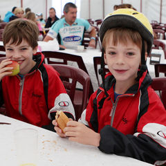 The day began with a breakfast, but plenty was going on before and after the fans ate. The fans were able to check out the team bus, as well as watch the mechanics work on the team bikes. After that, the riders joined the fans for their rides. Team CEO Patrick Lefevere rode on the 80km route, and the riders were also guided by Sports Directors Wilfried Peeters and Rik van Slycke. The rides were supported by the Omega Pharma - Quick Step Cycling Team cars.