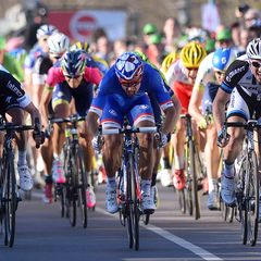 Gianni Meersman finished 3rd in the bunch sprint finale, as Nacer Bouhanni (FDJ) won and John Degenkolb (Giant-Shimano) was 2nd. However, because Meersman successfully went for intermediate sprints, the time he gained moved him up to 2nd in the general classification after the first stage. He is only 1" back from the race lead.