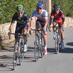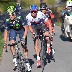 Valverde, Peter Sagan (Tinkoff-Saxo) and Stybar were the first three riders out of an elite group of at least nine to try and stay away. But they were eventually brought back by a group of six including Fabian Cancellara (Trek Factory Racing), Vincenzo Nibali (Astana), Daniel Oss and Van Avermaet (BMC Racing Team), Sep Vanmarcke (Lotto-NLJumbo) and Nathan Haas (Cannondale).