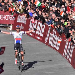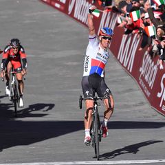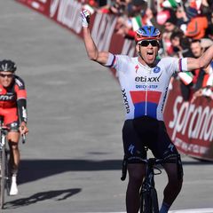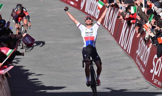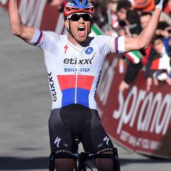 "Of course I am absolutely thrilled about this victory," Stybar said. "But what made this win even sweeter is that in the technical meeting this morning, Davide Bramati and the team put their trust in me and I was deemed the race captain. It was a big responsibility and I'm happy I proved to be worthy of the honor. It was a great race. I love this kind of technical, up-and-down parcours. I can handle my bike well, so I was really in my element here in Italy today. At 50 kilometers to go were in the front of the peloton with Sagan and Valverde, but it was too early. So we waited and then we finally went with eight or nine riders. It was a bit of a natural selection as you could see who the strongest riders were already. When we remained with three riders, I was afraid of Valverde but also Van Avermaet because he didn't pull a lot in the last 5 kilometers before the last clime to Siena. He was on my wheel and I expected his attack, but not so early on the bottom of the climb. My 'finish line' was at the top of the climb, so I really gave everything to catch him and then when I did, I was able to pass him there. When I turned into Piazza del Campo it was a dream. When the sun is in your face in that beautiful location, with such a passionate public, and you know you are the winner with no one able to catch you, it is like an explosion of joy. It was truly incredible. This win is also uniquely important for me because it comes after a period of struggle after crashes at Eneco Tour and my one and only cyclocross race of the winter. It was a long way back to this level of condition, so I appreciate this victory even more. I want to dedicate this win to my wife, Ine, and my family. They have been such great supporters always."