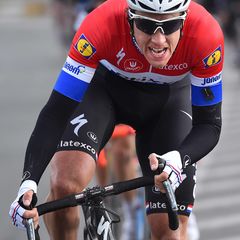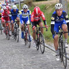 These riders eventually caught the ones in the lead, except for Van Melsen, who attacked and managed to stay away a couple of kilometers more. The peloton wasn't far behind, and in the end made the junction after the Oude Kwaremont – Paterberg combo. Inside the final ten kilometers, as the teams were drawing their tactic for a bunch gallop, Greg Van Avermaet (BMC) jumped from the bunch and put 14 seconds between him and the chasers. Immediately, Niki Terpstra – a two-time winner of Dwars door Vlaanderen – made his way to the front and rode full gas, his huge effort paying off with less than two kilometers to go, when the Belgian was brought back.