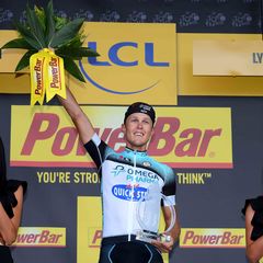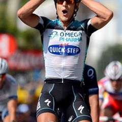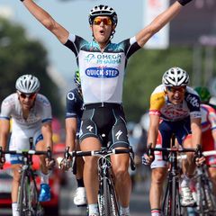 Omega Pharma - Quick-Step Cycling Team rider Matteo Trentin won the fourth stage of the Tour de France for the team out of an original 18 rider breakaway at 191km Tour de France Stage 14 on Saturday, launching his sprint from long distance and overtaking several riders in an exciting final that included catching a rider solo with just a kilometer to go.