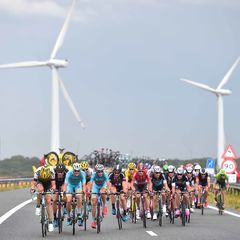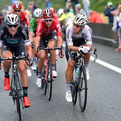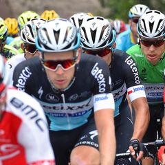 An original breakaway was caught with 62.5km to go in the stage by a fast paced peloton that came back together after splitting earlier in the race. But that was not the end of the big actions. Etixx - Quick-Step, among other teams, came to the front and split the peloton with less than 60km remaining. Only 26 riders remained ahead and many key riders, such as Vincenzo Nibali (Astana), Nairo Quintana (Movistar), Alexander Kristoff (Katusha), and Rohan Dennis (BMC Racing Team), were forced to try and chase to minimize time losses. Six Etixx - Quick-Step riders were in the front group.