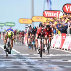 "I think Mark Renshaw went a little too early and it left me hanging a bit," Cavendish said. "It seemed to be a cross/headwind when we came in, and that's why I held the barrier. It's kind of hard to feel it unless you're in the wind, and we don't want to really be doing it until about the last kilometer. If it had been a cross/tailwind, we would have been OK. Maybe I could have waited, let them jump, and then jumped on their wheels, but it's a risky move. With a headwind finish I didn't want to go with more than 200 meters to go. I knew it was a gamble to go so long, but I just went and with good luck I stay ahead. But with three strong guys like Greipel, Sagan, and Cancellara, it's not so easy. I gave them a leadout in this case. I'm disappointed obviously, but you can take the positives that Etixx - Quick-Step rode strong today. They forced the split and rode to the end selflessly. Tony Martin rode in the green jersey. I'm disappointed we couldn't get it, but it's the Tour de France and Andre Greipel deserved the win today. Now we look to tomorrow. It's a finish that can suit guys like Michal and Rigo. We've got a team that can be in the actions of a lot of stages in this first week. For me personally, the day of the cobblestones might be a chance, but the stages after are more likely to be a bunch sprint. We will see what can happen as we have nine strong riders who can try to make something happen, as we did today."