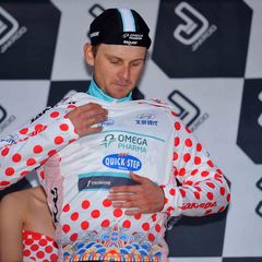 Alaphilippe, Golas and 4 other riders attacked after 26 km. They gained a maximum lead of 4 minutes, but the peloton caught them in the finale. Golas took 43 points for the mountain classification during his breakaway attempt. After the stage he received the KOM jersey on the podium.