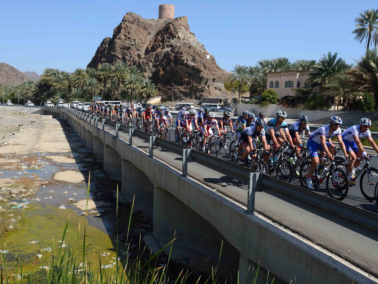 Tour of Oman Stage 2 featured a challenging final 25km, including KOMs Al Hamriya and Al Jissah. As the peloton reached the first KOM, a lone rider out of an original two rider break was caught. By the second KOM, the peloton was shattered. By the time the race approached the final, the peloton was down to 50 riders, the leader of the race Marcel Kittel (Argos-Shimano) was dropped, and a lead group had about 19" on the rest of the field.