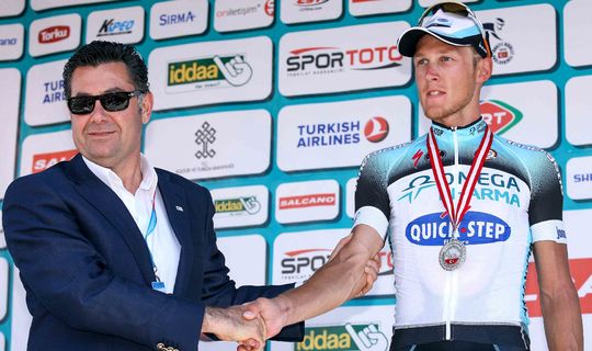 Omega Pharma - Quick-Step Cycling Team rider Matteo Trentin, in his first race back since an injury to his scaphoid earlier in the season, earned a hard fought 2nd place in a sprint at the end of the 183km Stage 5 of Presidential Cycling Tour of Turkey on Thursday.