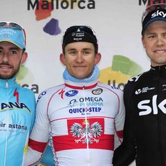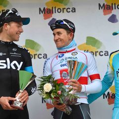 "I am really happy because my victory repaid the hard efforts of the teams in the first two races," Kwiatkowski said. "We didn't win, but we were always in the front and fighting. Today we didn't really control the race but we stayed the entire day at the front. Immediately after the start Vakoc went into the breakaway. The first two hours of racing were hard. But, Petr stayed in the first group and at that point we could take it easy behind. Then before Puig Major, Team Sky pulled to try and catch the breakaway. We stayed in the front with basically the whole team. When we started Puig Major we didn't really set the pace. We stayed on the wheels of the other teams. When Sergio Henao (Team Sky) attacked alone, Serry started to pull and the rest of the team helped him. After 7 kilometers of the climb I attacked and caught Henao. We then worked really well together and caught the breakaway at 7 kilometers to go. When we caught them, Vakoc did a great job for me. He basically helped me and I was able to launch my attack at about 6 kilometers to go on the false flat at the top of the climb. Then I went full gas on the descent. I know the descent really well, so for me it was an advantage. I arrived alone and it is super nice when you can raise your arms in the sky for the win. It's a great feeling and I am very happy about it."