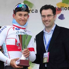 The stage, which featured brutal climbing including Category 1 Puig Major approaching the final, was one OPQS dominated. Young OPQS rider Petr Vakoc started the day in a breakaway that stayed away for much of the stage. Kwiatkowski attacked, catching one other rider trying to bridge and the duo caught the group with Vakoc in the final kilometers. Kwiatkowski then went on solo, having as much as a 28" advantage with just two kilometers remaining. He hardly lost ground going into the final for his victory. Edvald Boasson Hagen (Team Sky) finished 2nd, 27" back from Kwiatkowski. Francesco Gavazzi (Astana Pro Team) was 3rd.