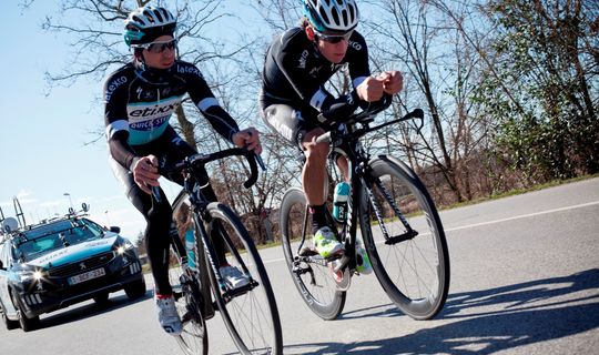 Etixx – Quick-Step riders Rigoberto Uran and Gianluca Brambilla performed reconnaissance of the Stage 14 59.2km Giro d'Italia ITT, which starts in Treviso and ends in Valdobbiadene, on Thursday. Etixx – Quick-Step trainer Koen Pelgrim and Sport Director Davide Bramati were present to help the two riders scout the parcours.