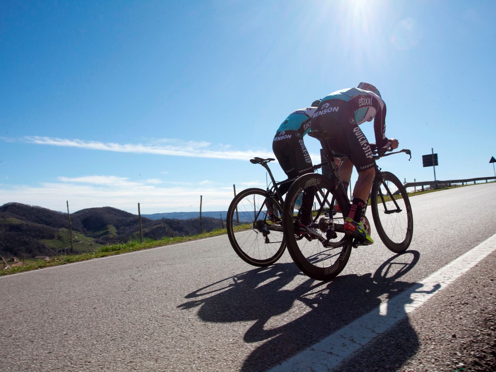 Etixx – Quick-Step riders Rigoberto Uran and Gianluca Brambilla performed reconnaissance of the Stage 14 59.2km Giro d'Italia ITT, which starts in Treviso and ends in Valdobbiadene, on Thursday. Etixx – Quick-Step trainer Koen Pelgrim and Sport Director Davide Bramati were present to help the two riders scout the parcours.