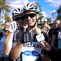 "I was 20th position or something, but I stayed calm because a lot of guys were going full gas into a headwind," Meersman said. "You can never hold that kind of effort for long into a headwind. So I moved up a little bit, and then at the top of the uphill part of the finish they slowed down a little bit. I accelerated at that point. Kwiato looked behind and saw I was there, and he immediately took me to the front together with Styby. So, it was Kwiato, Styby, and me, and it was full gas to the finish. Even at 200 meters to go I was 3rd position and I just went as hard as I could. I knew it was the right time. So I went and I got the win. This is my second finish here and I really like it. You have to focus on the uphill, then try to recover a little bit, and then the timing is important because it is slightly downhill after that. It worked out perfectly for me. From the first kilometer the whole team put their confidence in me. Petr Vakoc and Julien Vermote were riding all day in the front into a headwind. Chapeau to them. Then the other guys, Michal Golas, Yves Lampaert, Tony Martin, and obviously Styby and Kwiato brought me to the finish. It was really good team work. I've participated in a few races and already won two. After Australia I had a small break of about a week and then I went immediately to Calpe to train hard. I then flew from Calpe to Portugal with the objective to try and win the first stage, and it worked out. I am really glad I am in good shape and could immediately finish the preparation with a victory. This victory is dedicated to my family who misses me a lot, but when I win they are really happy. I also dedicate this victory to Claude Criquielion, who died today at 58 after a bad stroke. I didn't know him personally, but know he was a big champion and I dedicate this to Claude and his family as my condolences. It is a sad day for Belgian cycling."