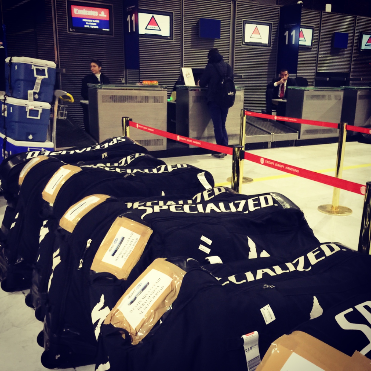 We always keep our fingers crossed hoping all of our belongings will arrive with us, and arrive the same condition as they shipped. It's always a chaotic moment if a bike or a bag gets lost, trying to get it back. You lose a couple days you could be spending preparing for the upcoming race.