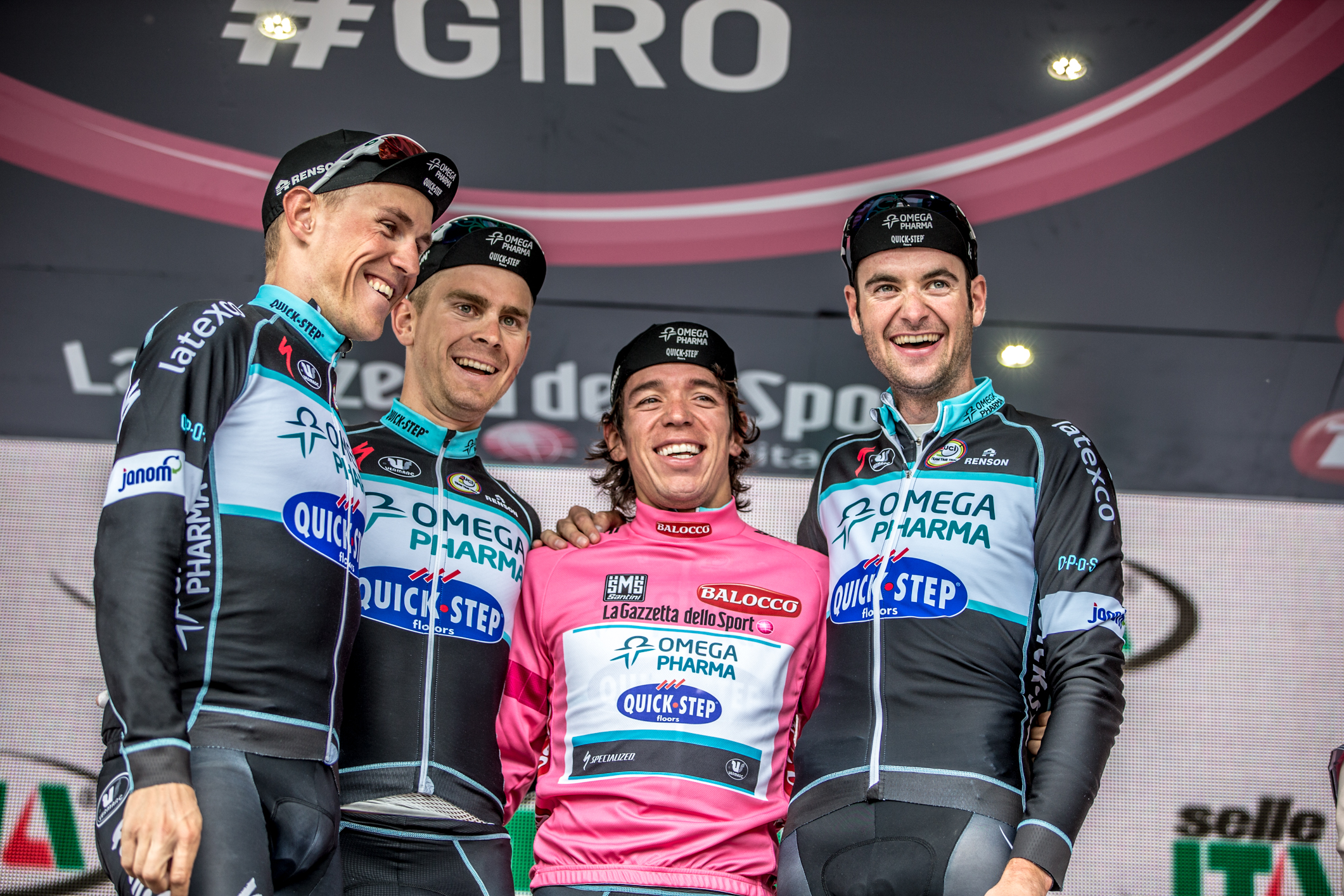 Om eerlijk te zijn is het een grote emotie dat we hier in de Giro zijn en in deze situatie. We zijn elke dag present en we ontdekken telkens iets nieuws. We leren van elkaar. We leren van Rigo en ook van de grote groep renners die hem omringt. In het wielrennen kun je nooit stoppen met leren. Er is altijd iets nieuws waar je het beter kunt doen. Dat is de spirit van de ploeg. We proberen dingen altijd 100 procent te doen, misschien wel 105 of 110 procent. We krijgen geen spijt aan het einde van de koers als we zo doorgaan. We vechten elke dag voor wat we waard zijn en bewijzen dat we een hechte groep zijn. Als Rigo de trui houdt is het aan de jongens op de weg die er voor hem zijn. Om goed te presteren in het klassement heb je een goede ploeg nodig. In een koers als deze win of verlies je samen. Dat leer je als je elke dag moet vechten zoals in de Giro.
