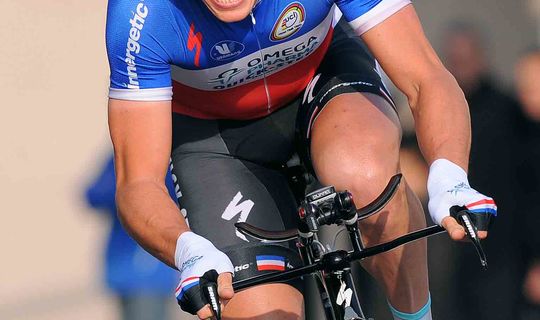 Omega Pharma - Quick-Step Cycling Team renner Sylvain Chavanel gaf alles om de zege te pakken in de proloog van Parijs-Nice. De Franse kampioen tijdrijden kwam net te kort voor de zege, die ging naar zijn landgenoot Damien Gaudin (Europcar).