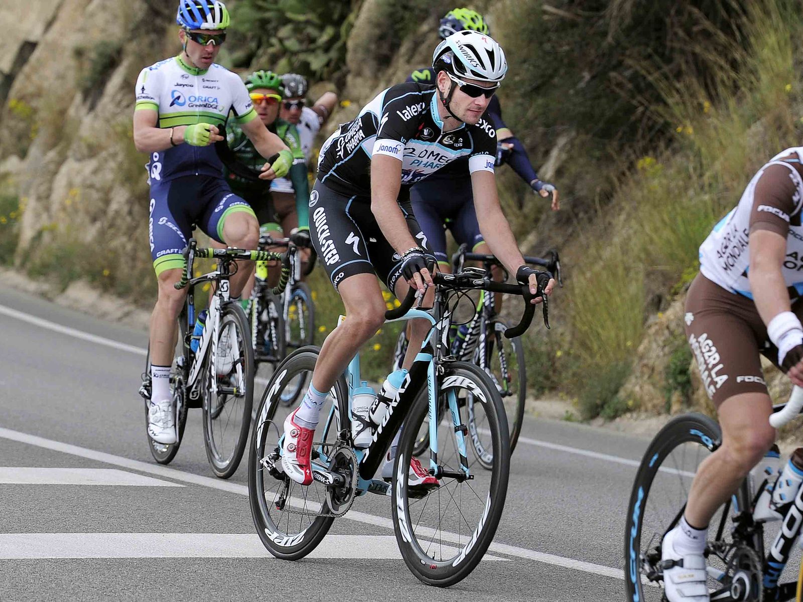Omega Pharma - Quick-Step Cycling Team renner Julian Alaphilippe pakte vandaag zijn eerste podiumplaats in een World Tour koers. Hij eindigde als derde in de openingsrit van de Volta Ciclista a Catalunya.